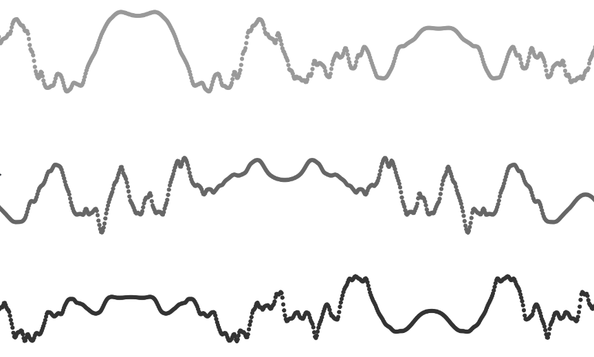 1 2 3 4 5 6 7 8 9 10 11 12 13 Layer.prototype.display = function(t){ this.yOff = this.yOff2; var step = (height-120)/num; noStroke(); for (var x=0; x<width; x+=1) { var y = this.start +noise(this.noize+sin(this.yOff)*5)*step*3; //----------------------群山曲线渲染方式---------------------- //基础渲染方式:使用rect逐条填充 rect(x, height, 1, -height+y); this.yOff+=TWO_PI/(width); } this.yOff2=t*this.speed;