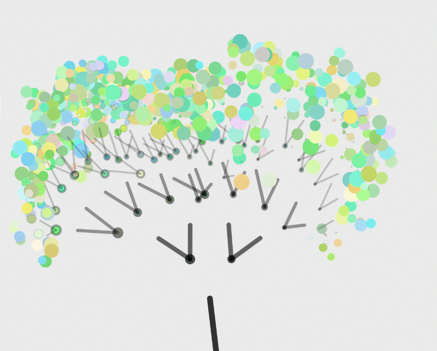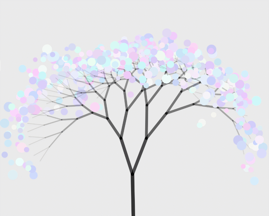 我们对分形树基础算法进行一些渲染改造,比如说给它添加上树叶: