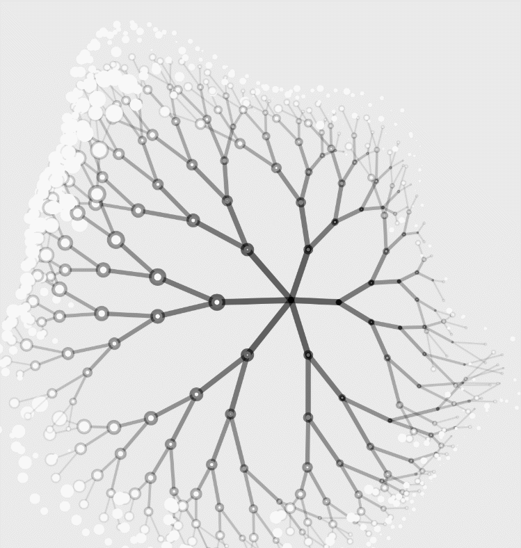 渲染函数有一部分在lineAryLib_0215.js的particle类的update函数里和layer类的display函数里面,分形树效果也可以进行调整,就在renderTrace_trees里面。