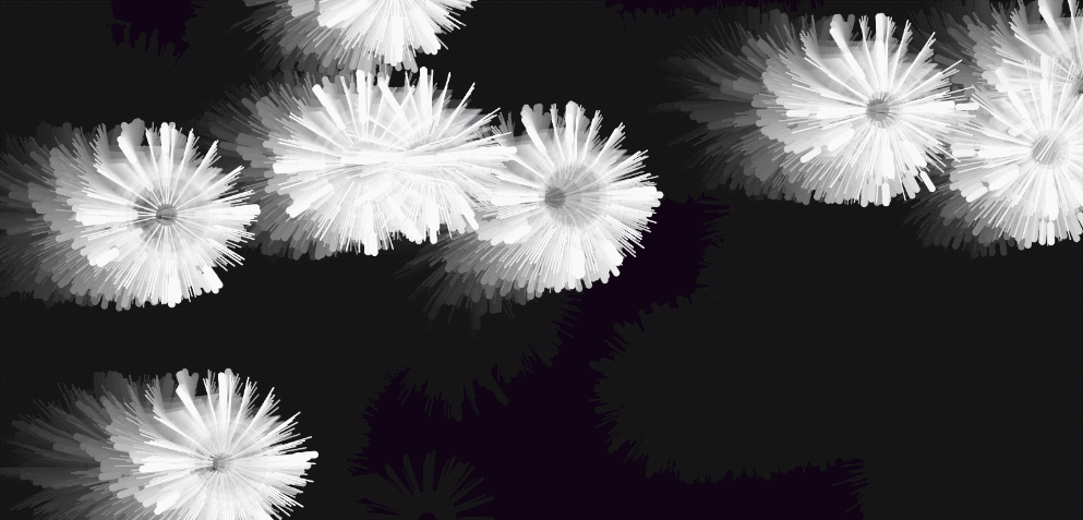 我太喜欢这个效果了↓↓↓,黑白唯美,转轮看起来像是昙花(或是白菊),意境也够,有相对比较少量的交互——鼠标横坐标x能提高转速。