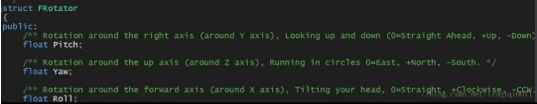 查资料查到FRotator的三个属性,还有yaw,pitch,roll在空间坐标系的作用。