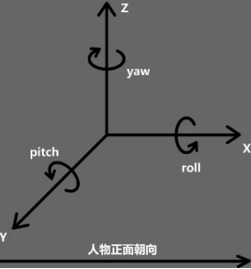 Yaw绕z轴旋转,pitch绕y轴,roll绕x轴旋转。
