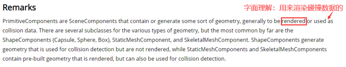 这里面的参数UPrimitiveComponent类官网介绍这个是用于渲染数据,以后应该有机会用到,先码住。