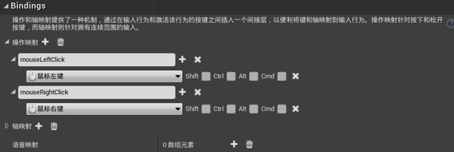 关于动作映射和轴映射,我查了一下具体有啥区别。在代码实现上最大的区别就是动作映射绑定的函数不能带参数,而轴映射需要参数。