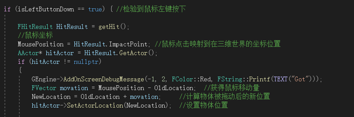 补充一点:需要注意的的是编译运行之前,需要设置鼠标在play界面可见,不然运行的时候就看不到鼠标,把这一段代码添加到BeginPlay()函数里: