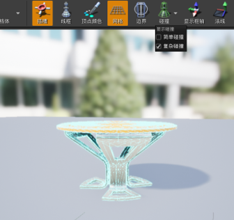 接下来在世界大纲视图里选中要进行操作的物体,右键对它的staticmesh进行编辑,在资源编辑器里设置碰撞为复杂碰撞,如下所示: