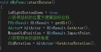 首先,先在之前按下鼠标右键绑定的函数startRotate里添加如下所示的代码。与移动鼠标思路一致,获取鼠标的当前位置和物体的当前旋转角度。