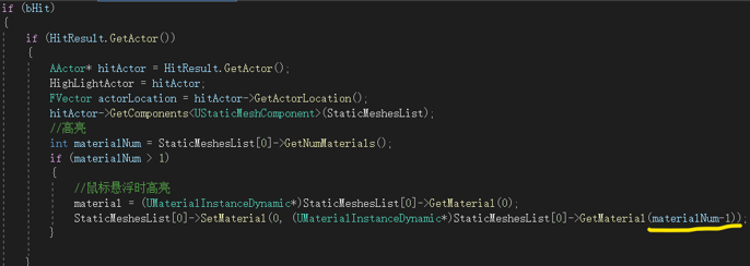 第二种是代码逻辑错误,比如数组越界,我在实现高亮换材质时遇到了这个。很坑,编译成功,一运行就崩,半天找不到哪错了。
