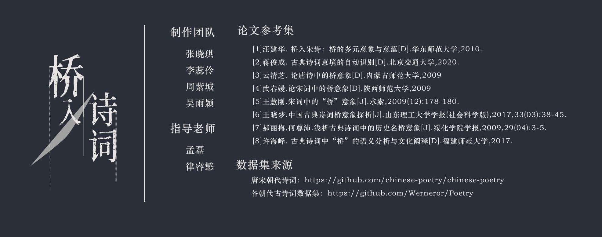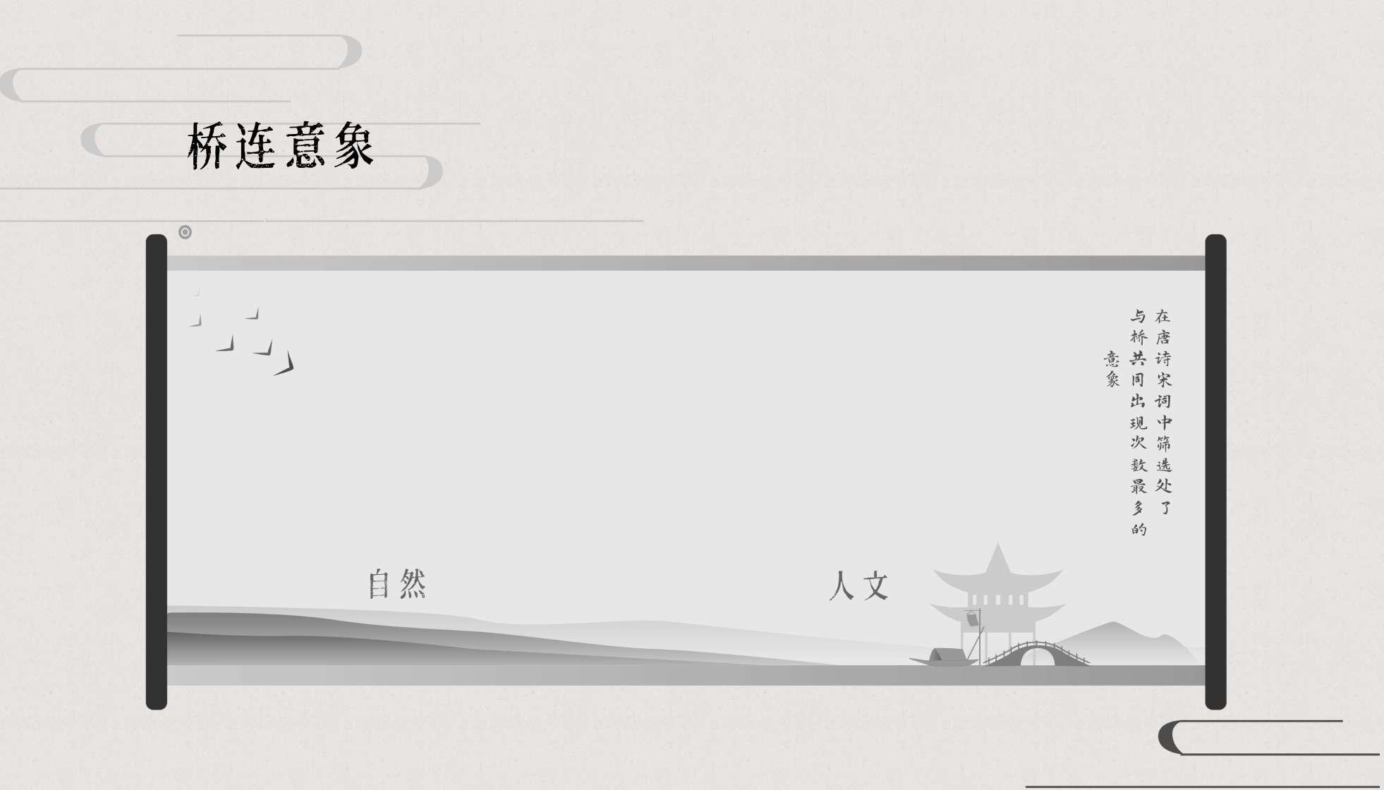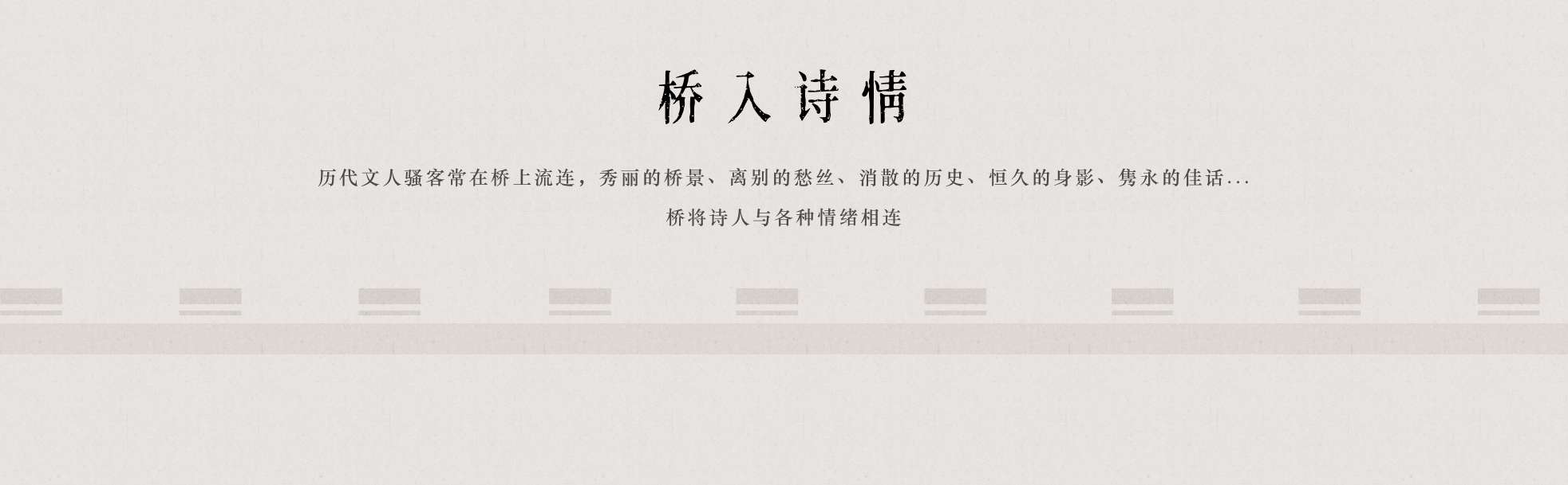 诗歌是人们想象与现实相结合的产物,桥在我国诗歌作品中亦占据着一席之地。古者以桥入诗由来已久。在诗词中,我们在灞桥上离别、在二十四桥上感叹世事变迁、在洛桥上思念家乡。桥梁是跨越障碍的建筑结构,也是连接自然与人文的纽带。