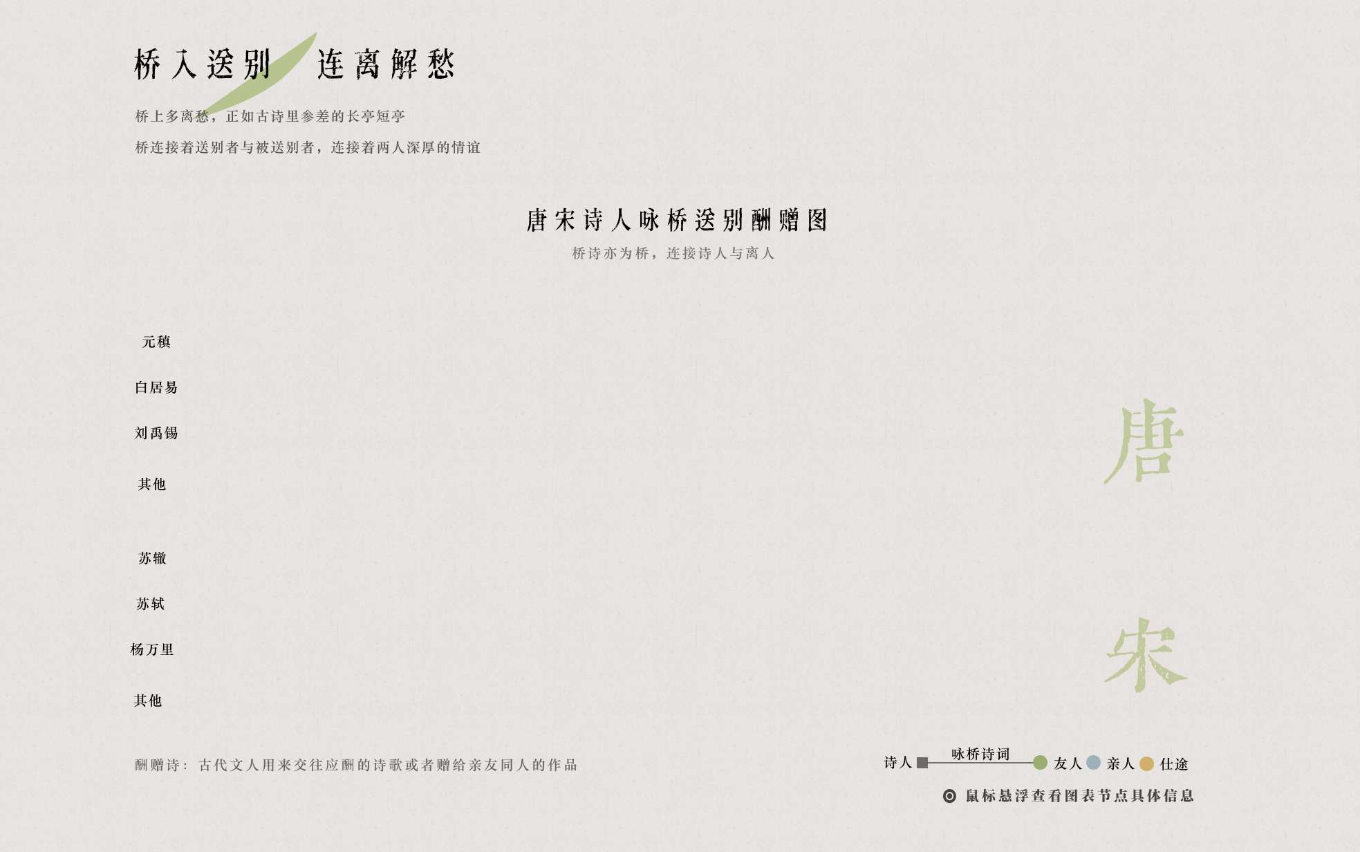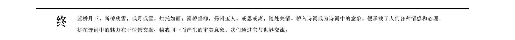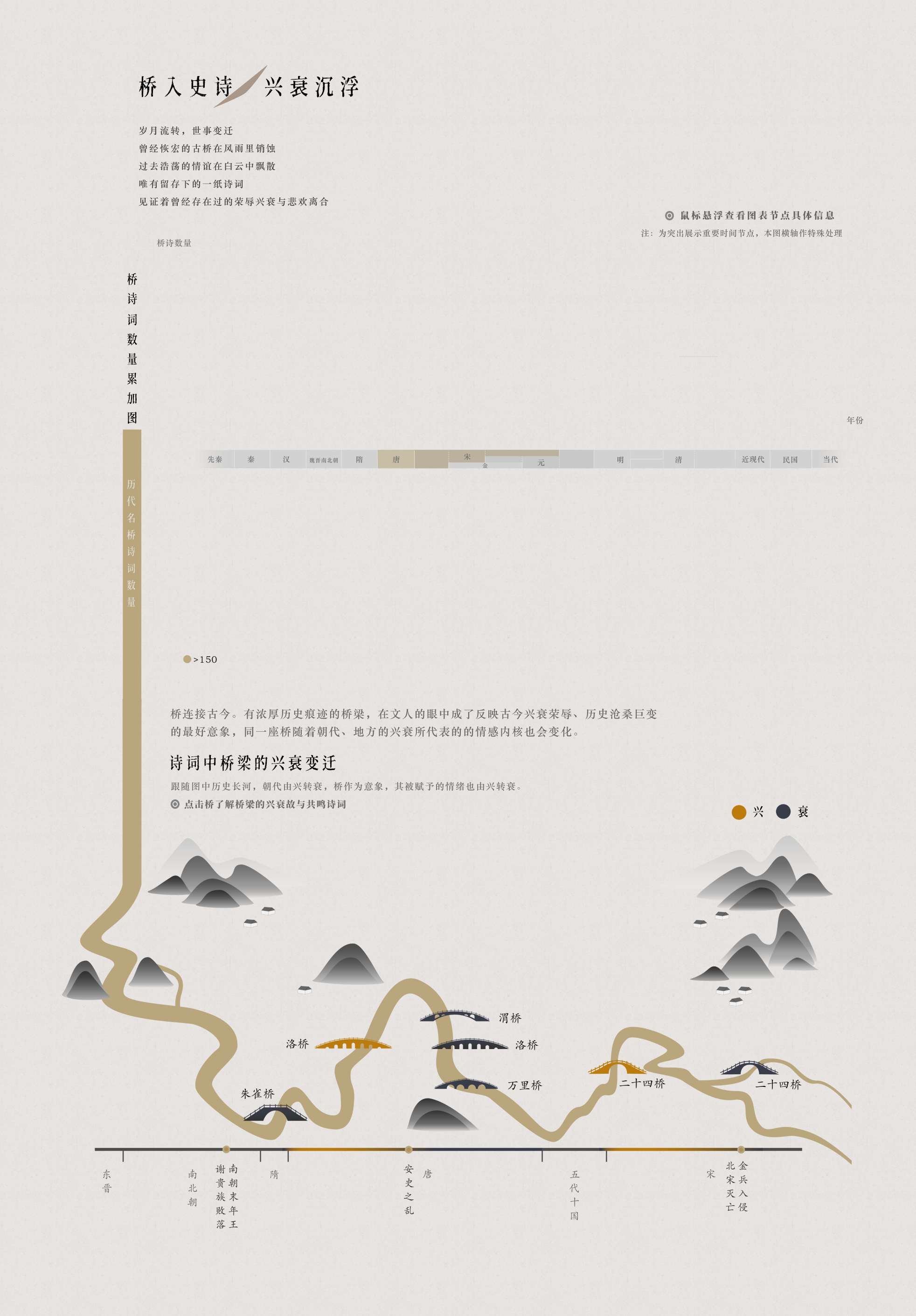 诗歌是人们想象与现实相结合的产物,桥在我国诗歌作品中亦占据着一席之地。古者以桥入诗由来已久。在诗词中,我们在灞桥上离别、在二十四桥上感叹世事变迁、在洛桥上思念家乡。桥梁是跨越障碍的建筑结构,也是连接自然与人文的纽带。