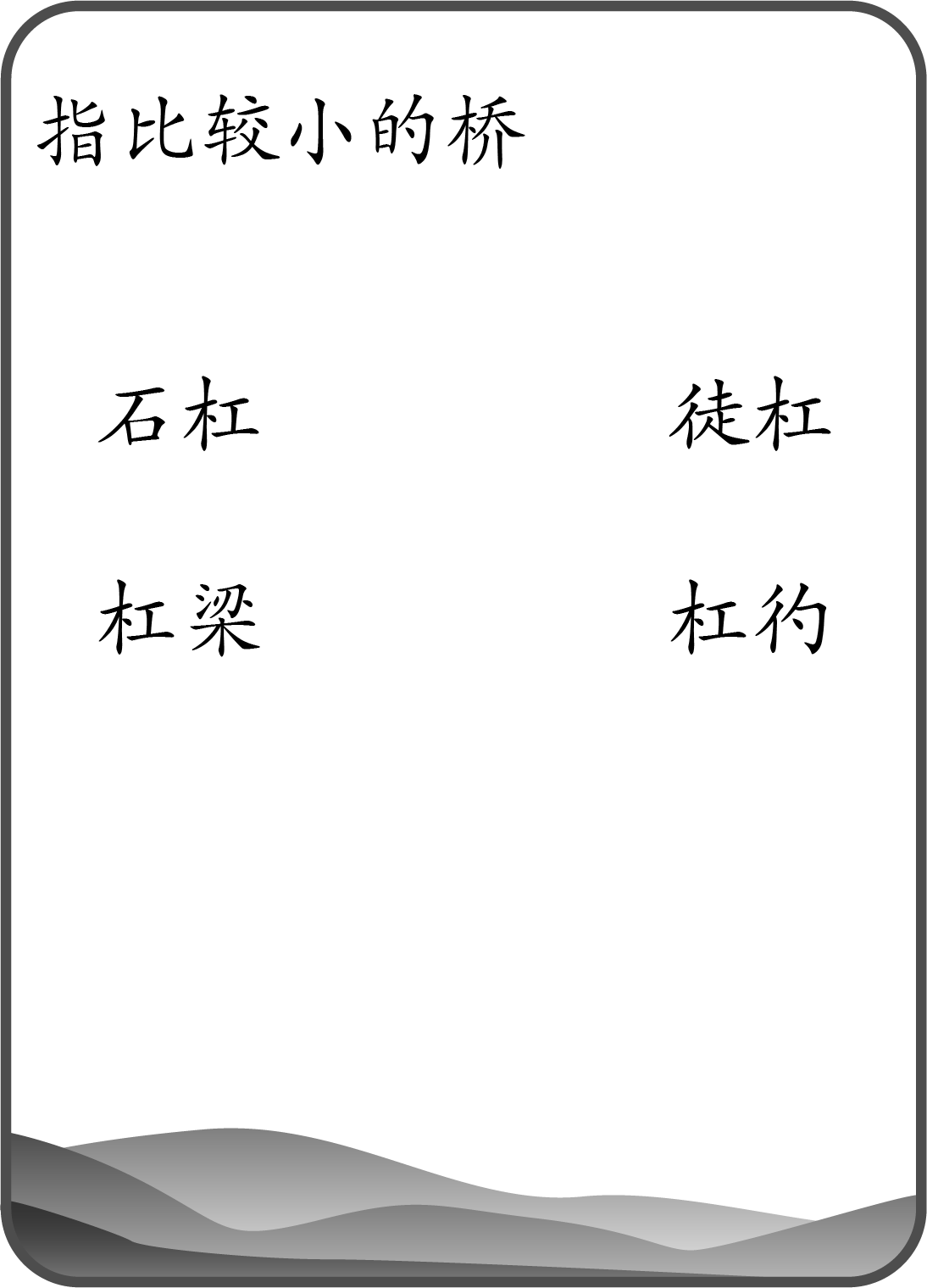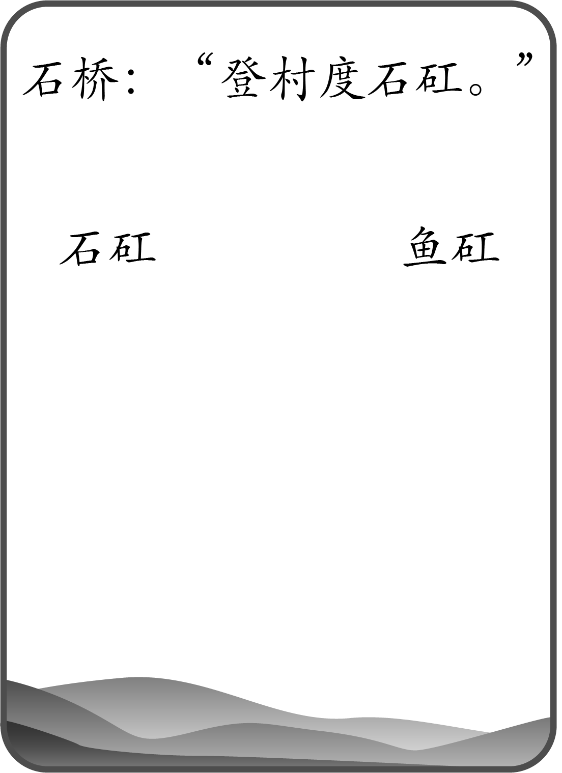 由于汉字字义在具体诗境中的比喻和引申,桥在诗中的呈现并非仅用桥字,有相当一部分是用其替代之字或词来入诗,比如梁、虹、月。